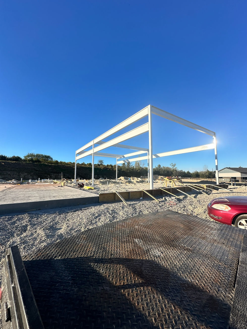 This project showcases various aspects of commercial concrete construction, including steel framework, concrete flooring, and freshly poured concrete slabs. The images depict construction sites, concrete foundations, and workers in action.